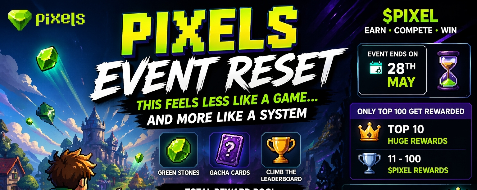 Yesterday, when I saw the new Pixels event going live today, I didn’t just feel excited I caught myself thinking about it hours later. Not because it looked complex, but because it looked too simple. You log in, do tasks, collect items, climb the leaderboard, earn $PIXEL. We’ve all seen this structure before. But for some reason, this time it didn’t sit in my mind as “just another event.”When I actually stepped in, that feeling got stronger. You’re not just playing randomly here. Every action starts to feel like it’s being tracked in a very deliberate way. Green Stones, gacha cards they stop feeling like rewards and start feeling like receipts. Proof that you showed up, that you spent time, that you did something measurable. It’s almost like the game quietly converts your effort into a number… and that number becomes your presence inside the event.