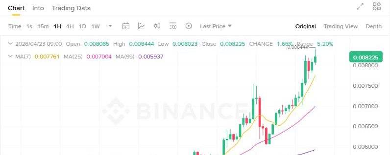 $TAC показывает мощный импульс: текущая цена — 0.008225, рост за 24 часа +30%. Однако RSI (24ч) достиг 82.54, что указывает на зону сильной перекупленности. Это ключевой сигнал: рынок разогрет, и высока вероятность локальной коррекции перед продолжением движения.