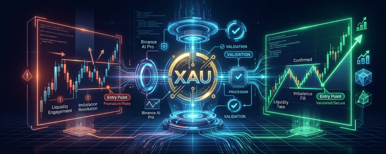 Binance AI Pro became relevant to me when I stopped treating trades as isolated ideas and started reviewing them as sequences with measurable breakdown points. On $XAU , the issue was not direction or even timing at first glance, it was how often I was interacting with incomplete structures without realizing it. I began tracking where my entries sat relative to liquidity engagement and imbalance resolution, and a consistent pattern appeared. Price would approach a level, show initial reaction, and I would enter before the sequence fully developed. What looked like confirmation was often just the first phase of rebalancing, not the actual move.