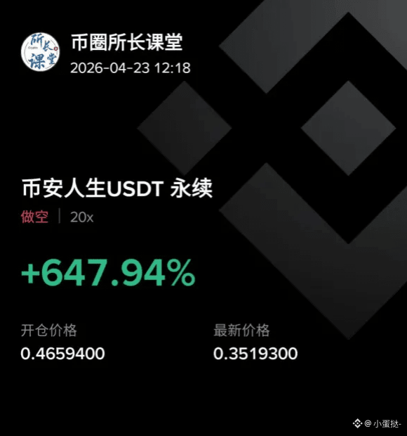 分析师 币圈所长 再次交出满分答卷。这笔 20 倍杠杆的空单,从 0.4659 进场至今,几乎没有忍受任何浮亏,利润直接起飞。