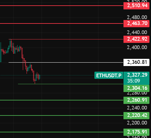 ETH夜间留意2360这个位置,只有4小时级别收在此位置上方这波回调才算结束,行情往上上方去2420-2463-2510这几个位置附近等空单!