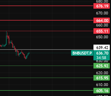 如果夜间4小时级别收不上639上方,那说明反弹没有啥力度,再次回踩下方去626-616-605这几个位置附近等多单!#BNB走势
