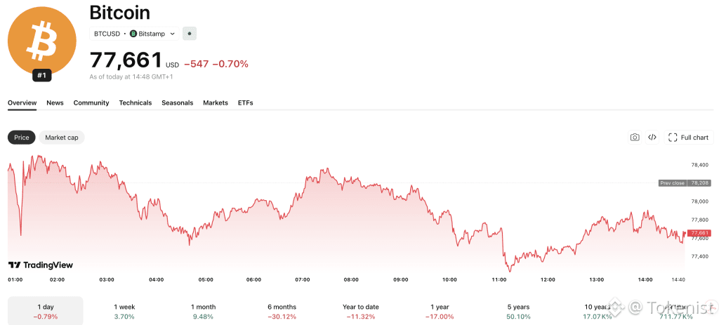 Key levels to watch: support at $74,259 and $70,186 to the downside; resistance at $78,053 (R1), $79,000 (near-term technical ceiling), and $80,000 (analyst consensus breakout confirmation level).