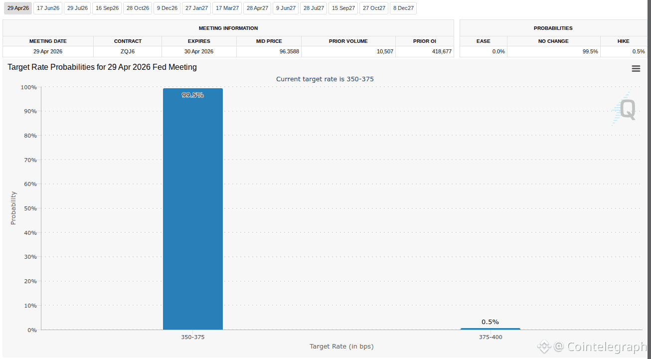 As Cointelegraph previously noted, markets saw little chance of Fed easing policy until the end of 2027 as geopolitical uncertainty raised the odds of inflation making a comeback.