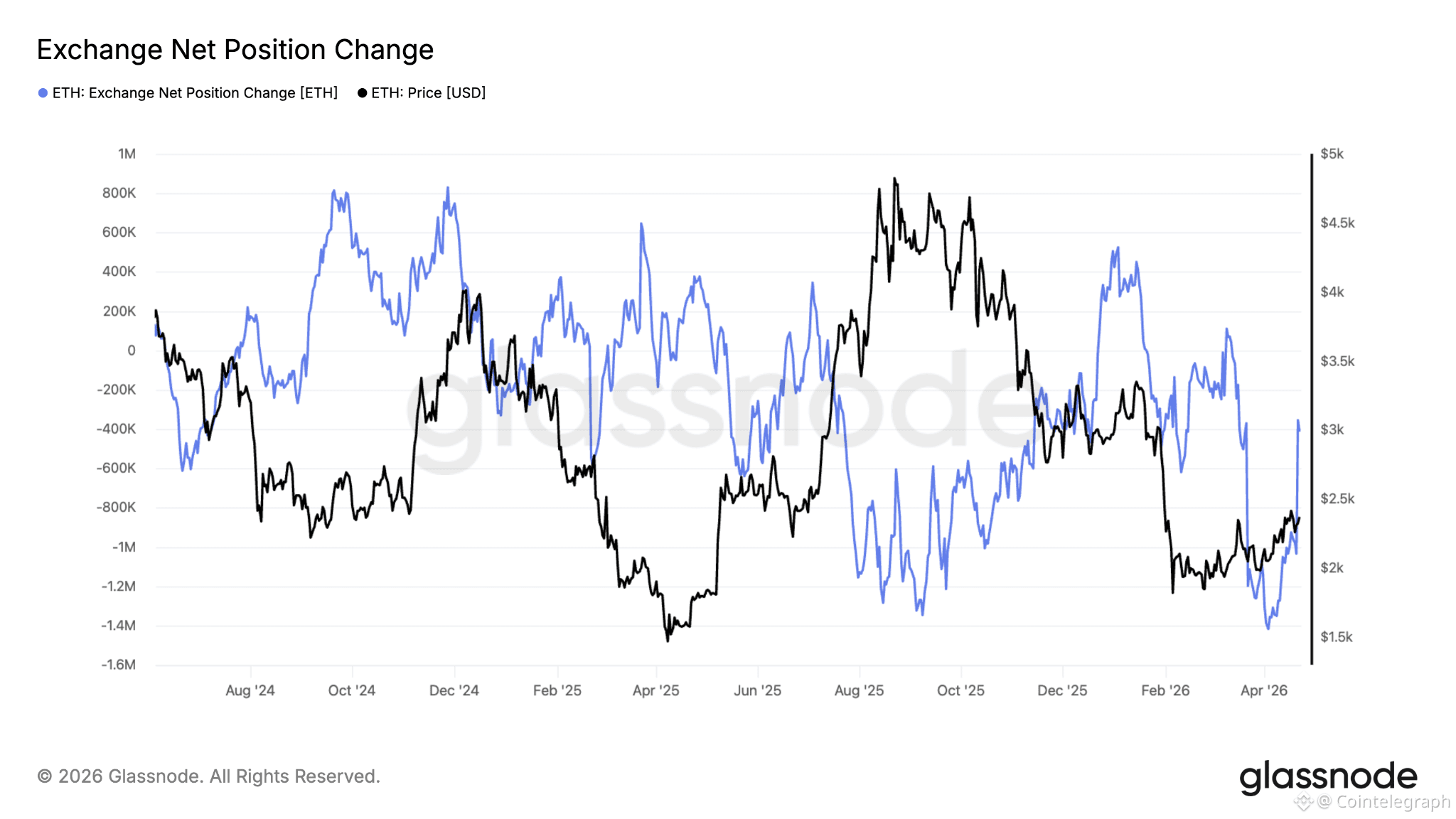 This is further reinforced by increasing exchange outflows, as the ETH net position change among exchanges fell by 1.4 million ETH on April 2, marking the largest spike in seven months, according to Glassnode data. The net position change is at -351,300 ETH at the time of writing on Thursday.