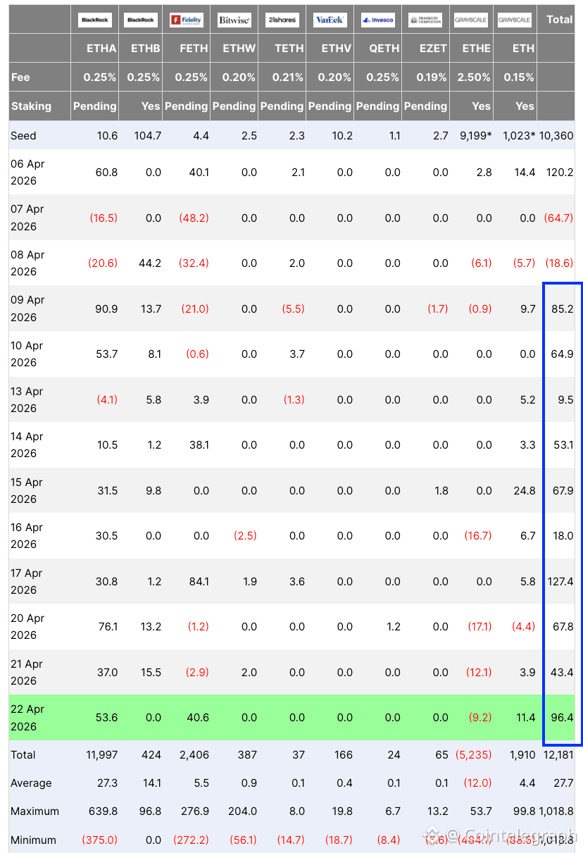 Spot Ethereum ETF flows table. Source: SoSoValue