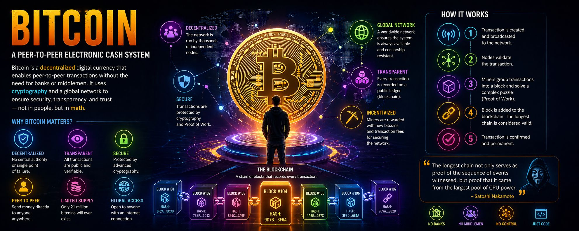 The idea behind Bitcoin is surprisingly simple. Instead of relying on banks or financial institutions to process transactions, it creates a system where people can send payments directly to each other. No middleman, no approval, no control from a central authority.