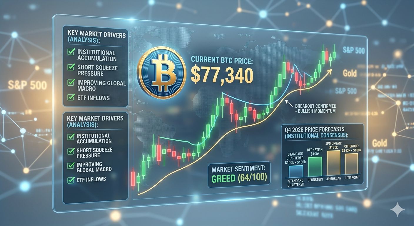 Price Action: Bitcoin has shown recent strength, largely supported by a significant short-squeeze event on April 18 that liquidated over $209 million in bearish positions. This move helped push the asset above the $77,000 mark.