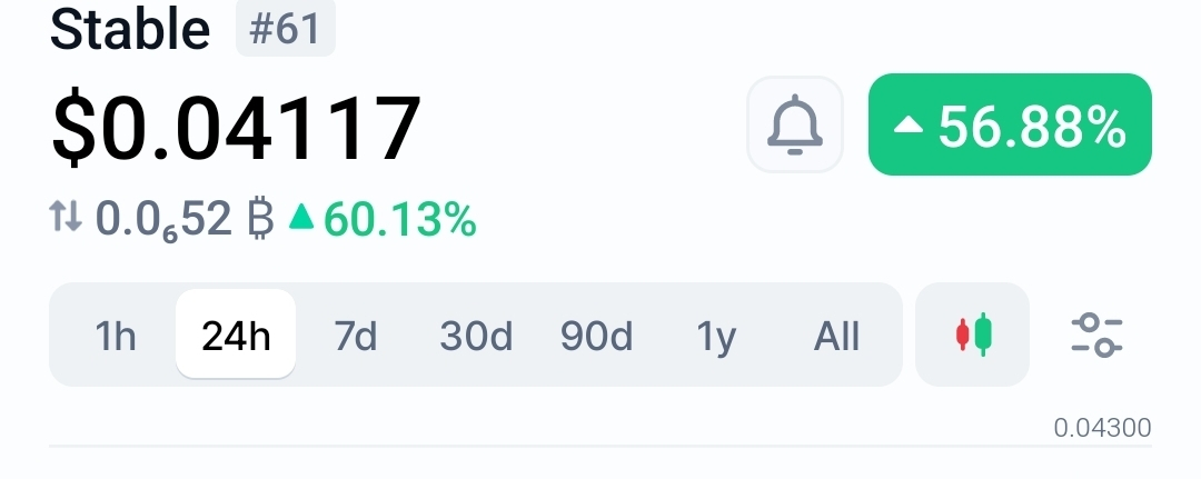 Overview: Trading volume exploded 180% to $57.7M. Data from April 24 showed STABLE as a top gainer on Bybit with a 329% spike in volume change (@cexscan), indicating fresh capital entering the market.