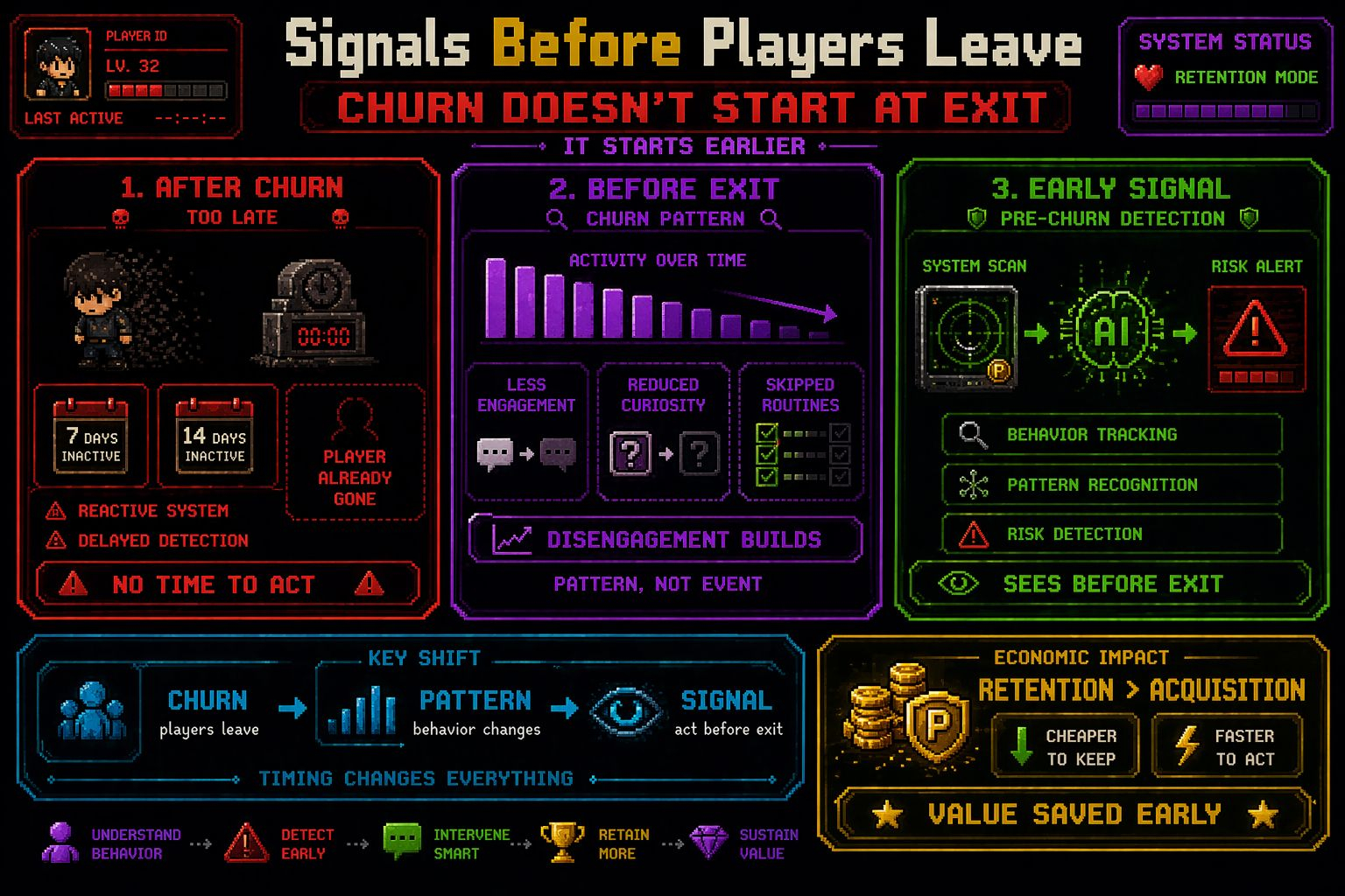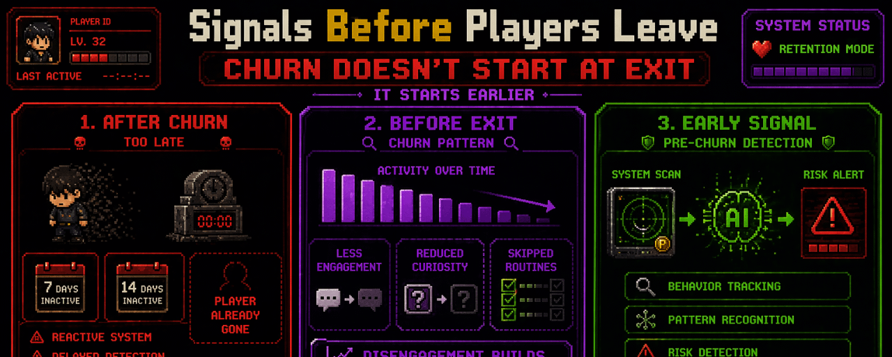 In most games, churn is something you label after the player is already gone. Seven days inactive, maybe fourteen, then they’re marked as churned. But by the time that label shows up, the decision was made earlier. The player didn’t wake up one day and suddenly quit. It built up over time, and that buildup leaves traces.