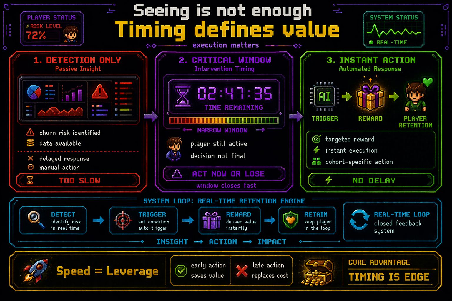 Because seeing the pattern alone doesn’t do much. A dashboard telling you who is about to leave is useful, but if the response takes days or requires multiple steps, the window is already gone.