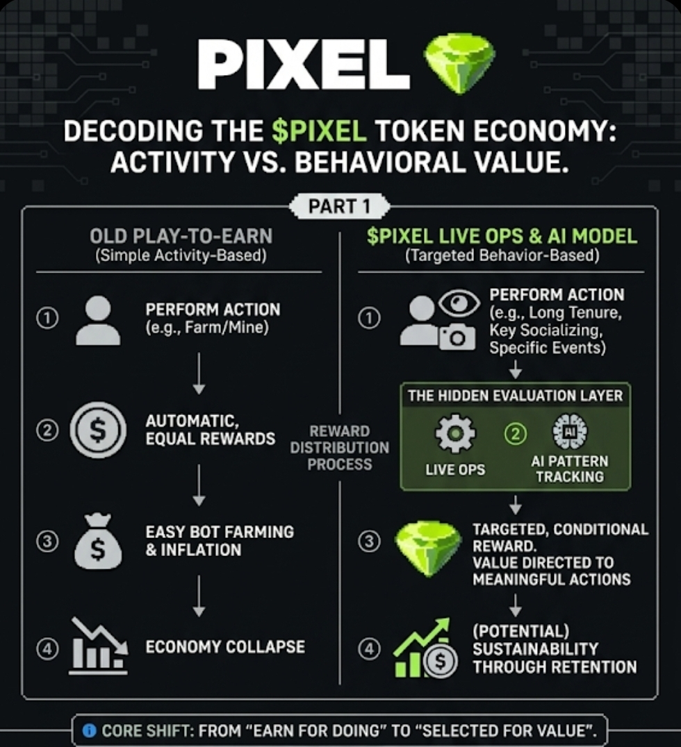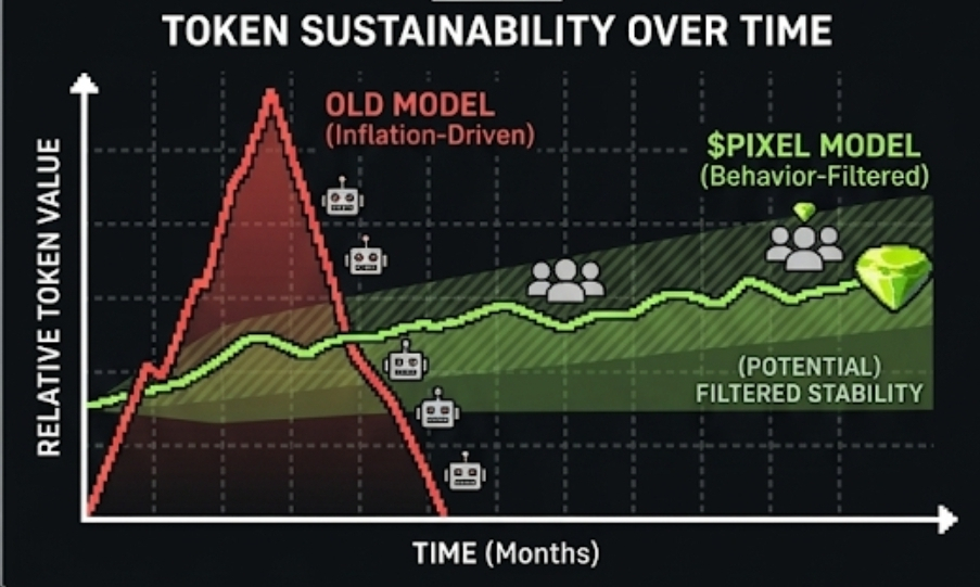 The token, in that sense, becomes less about earning and more about being selected. That’s a strange shift. It moves Pixel away from simple supply and demand into something closer to behavioral filtering. The demand isn’t just “I need the token to play.” It’s also “I need to behave in a way that keeps me inside the reward flow.”