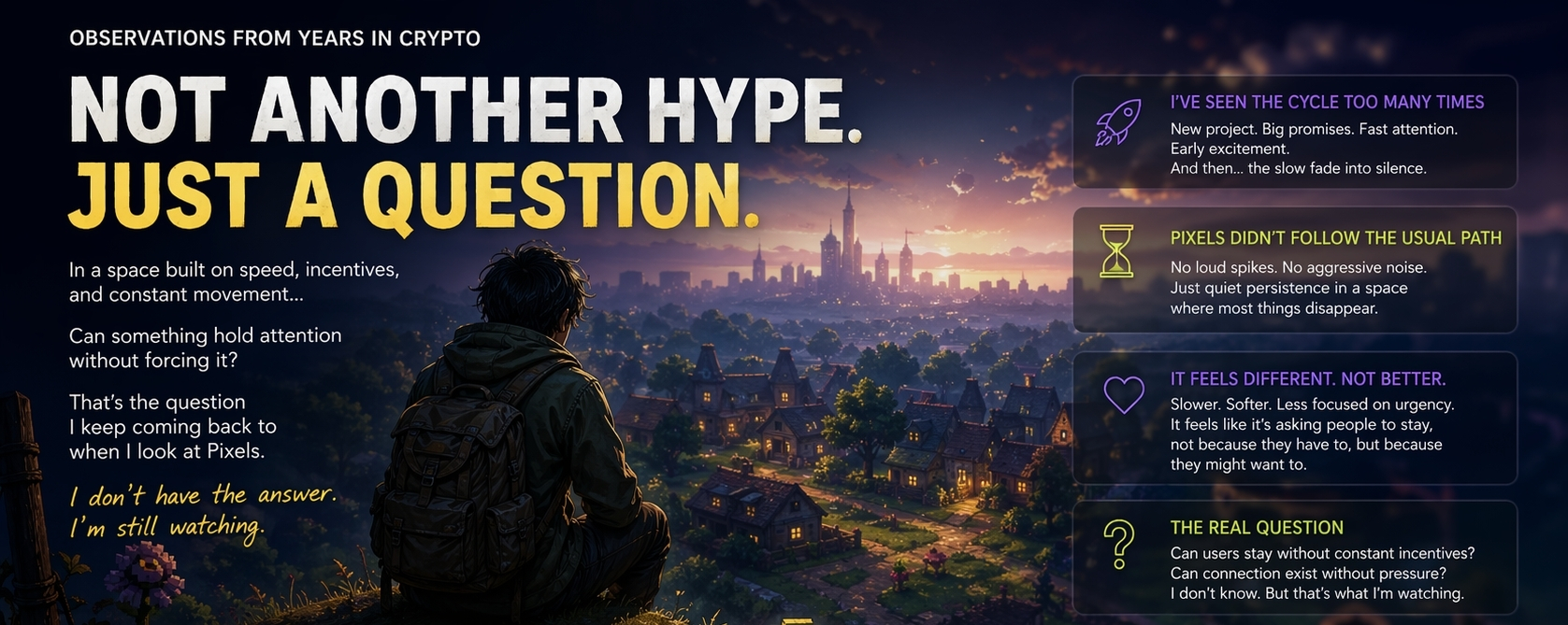 Pixels feels like it is touching something real. Not solving it just reaching toward it. The question of whether people can stay without being pushed. Whether attention can exist without pressure.