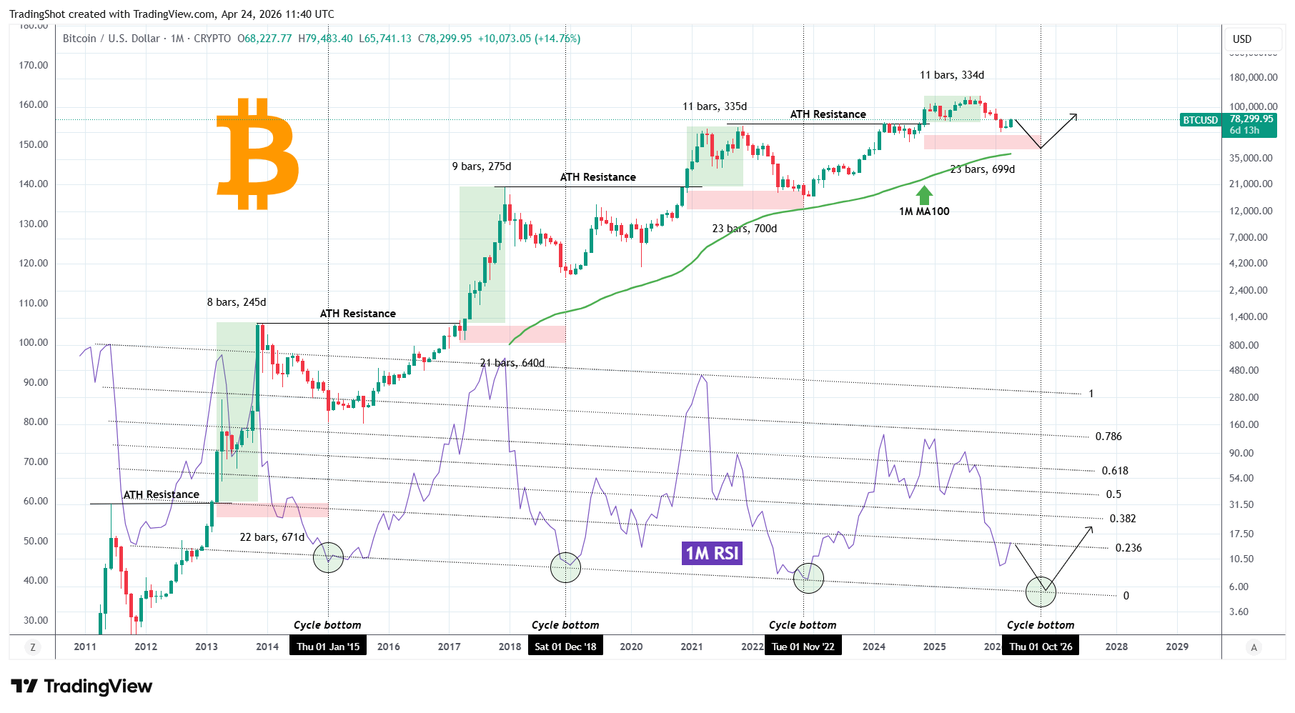 Bitcoin (BTCUSD) has historically made a Cycle Top within 8 - 11 months after the price made a convincing 1M candle closing above the previous All Time High (ATH) Resistance. At the same time, it has made a Cycle Bottom within 21 - 23 months after that same break-out occurred.