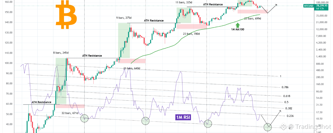 While that technical evidence is enough alone, here comes the 1M RSI to further confirm that model. Those same Cycle bottoms have occurred at or 1 month before the 1M RSI hit its Lower Lows trend-line (Fibonacci Channel bottom) as shown by the green circles.