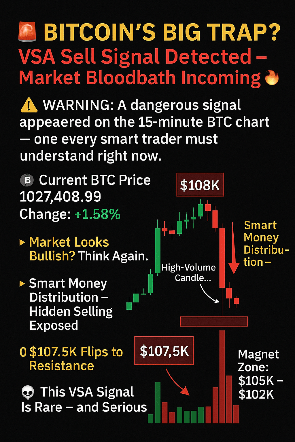 Tôi đang tạo bài viết này cho Binance square thay thế bài viết này như bản gốc của tôi và tạo một bức ảnh về bài viết này 🚨 BẪY LỚN CỦA BITCOIN? Tín Hiệu Bán VSA Được Phát Hiện – Thị Trường Đổ Máu Sắp Đến? 🔥