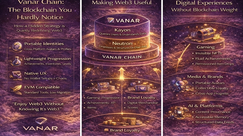 Vanar không cố gắng thống trị các dòng thời gian với các biểu đồ TPS hay các cuộc tranh luận về người xác thực. Nó không cạnh tranh để thu hút sự chú ý trong các lĩnh vực crypto thông thường. Thay vào đó, nó liên tục xuất hiện ở những nơi mà crypto thường gặp khó khăn: sản phẩm tiêu dùng, phương tiện truyền thông tương tác và trải nghiệm kỹ thuật số đại chúng.