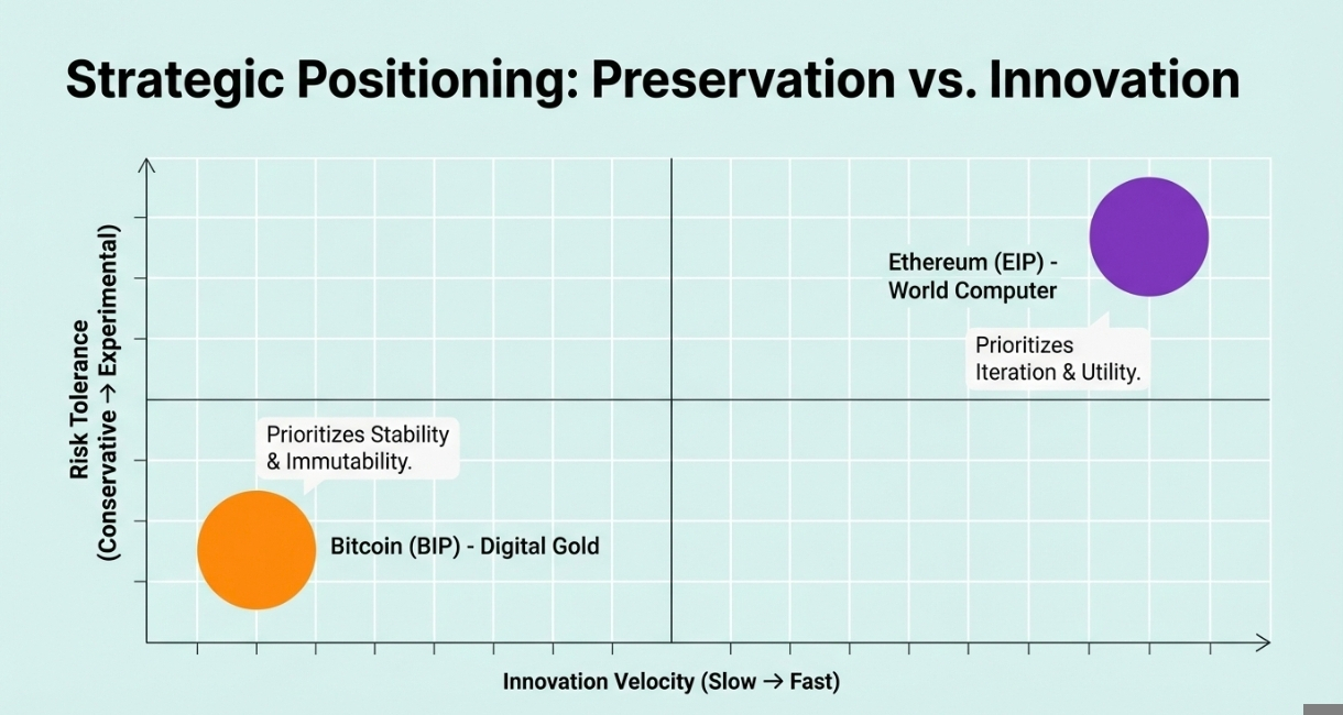 • The Logic: Bitcoin is like "Digital Gold." You don't want to change the rules of Gold every week.