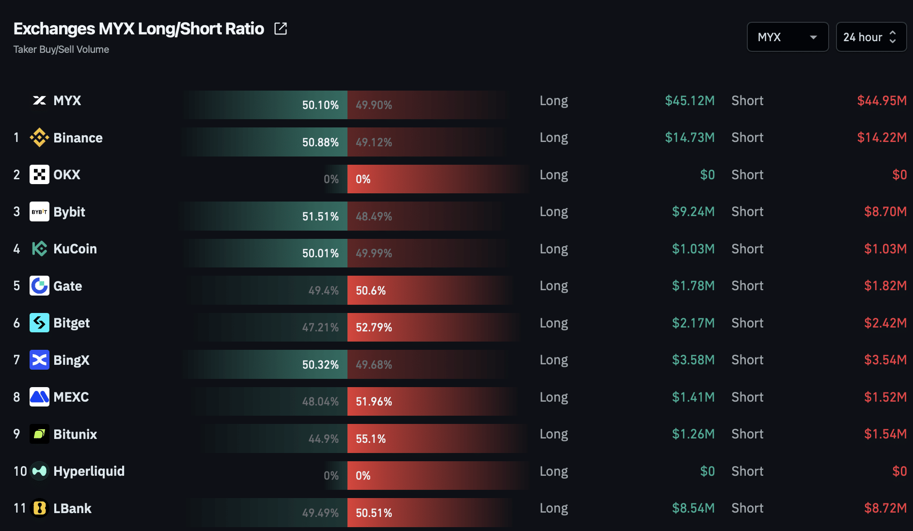 $MYX đang rơi tự do, bốc hơi 18% chỉ trong 24 giờ giữa bối cảnh các yếu tố cơ bản suy yếu. Tuy nhiên, thị trường phái sinh đang phát đi tín hiệu cảnh báo Short Squeeze kinh điển. Trong khi giá sụp đổ, Hợp đồng mở (OI) lại đang tăng lên, tạo ra một sự phân kỳ nguy hiểm.