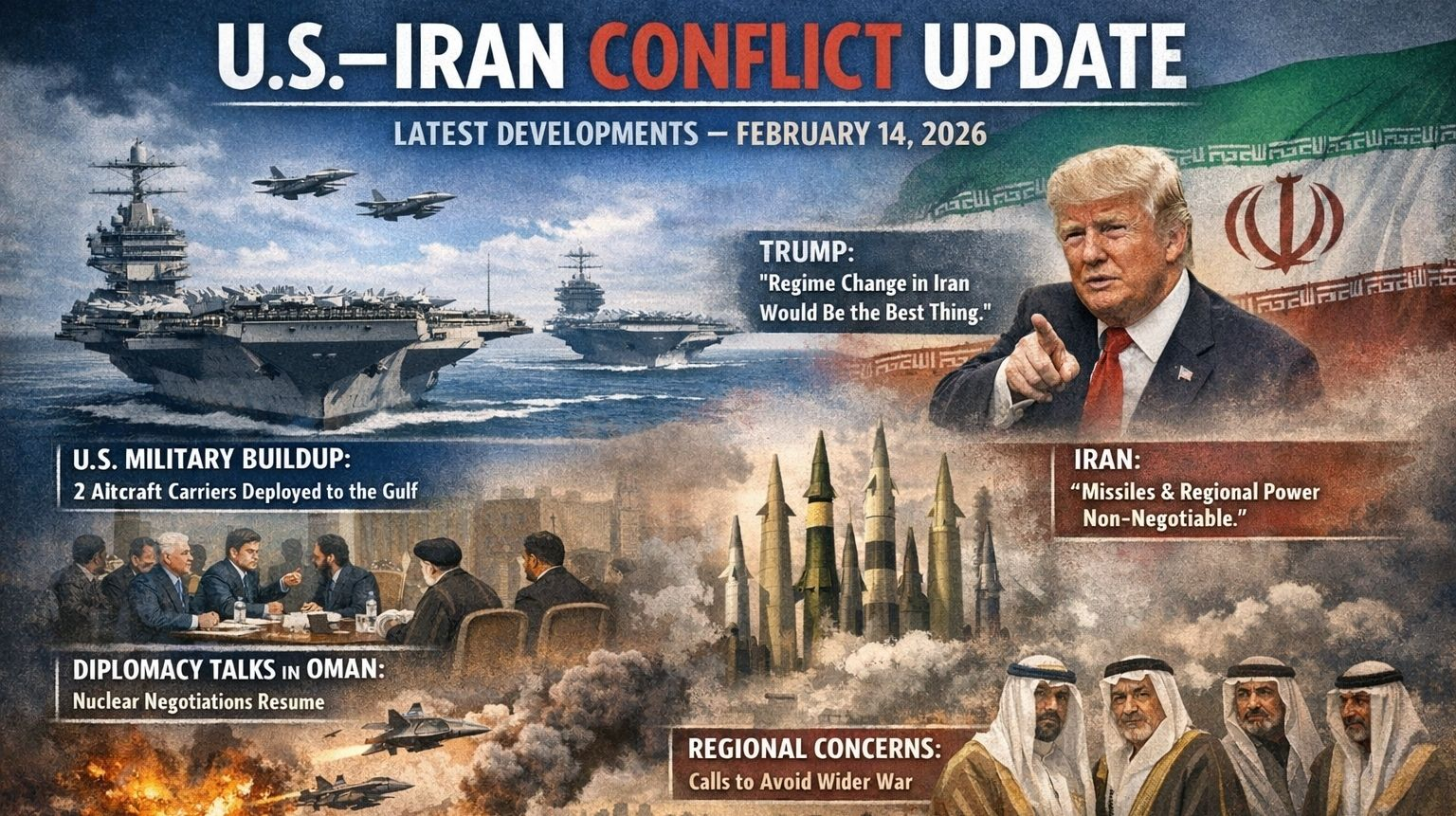 Các cuộc đàm phán gián tiếp giữa Hoa Kỳ và Iran ở Oman đã được khôi phục gần đây, chủ yếu tập trung vào chương trình hạt nhân của Iran. Cả hai bên đều mô tả cuộc họp là một khởi đầu tích cực, mặc dù chưa có thỏa thuận cụ thể nào được đạt được.