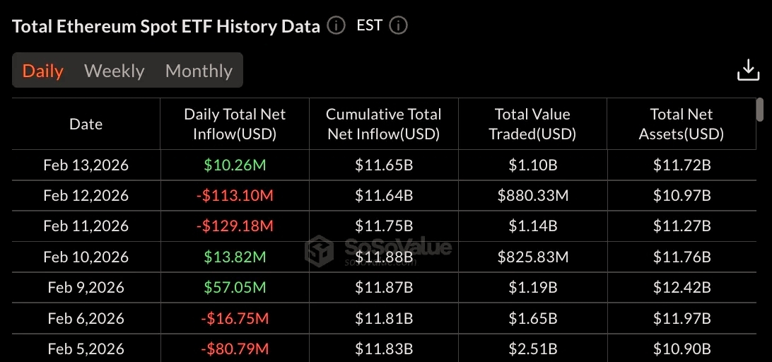 Động lực chính của cú hồi này đến từ việc các quỹ Spot ETF đã quay xe bơm ròng 10.26 triệu đô vào ngày 13/2, chính thức chấm dứt chuỗi 2 ngày rỉ máu bị rút thê thảm hơn 242 triệu đô trước đó. Dẫn đầu đà gom hàng là quỹ mini ETH của Grayscale với hơn 14.5 triệu đô được bơm vào thị trường.