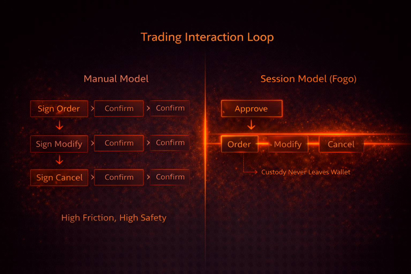 Độ trễ dường như là sự nhấn mạnh rõ ràng khi tôi lần đầu tiên bước vào Fogo. Sự đồng thuận dưới 100ms, sự phù hợp SVM, và gốc Firedancer đều rất hấp dẫn đối với các nhà giao dịch. Tuy nhiên, một khi tôi đã sa vào tài liệu, không phải tốc độ đã khiến tôi thay đổi nhận thức về Fogo, mà là một khối xây dựng sản phẩm: Các phiên.