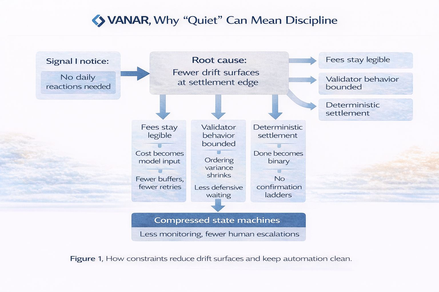 Vanar dường như thu hẹp phong bì tự do đó sớm hơn. Nó giảm khoảng cách mà hành vi được phép kéo dài dưới áp lực. Điều đó không làm cho nó hoàn hảo một cách kỳ diệu. Nó làm cho việc giả định khả năng lặp lại trở nên dễ dàng hơn. Và khả năng lặp lại là những gì tự động hóa cần nếu bạn không muốn một con người chăm sóc các trường hợp biên.