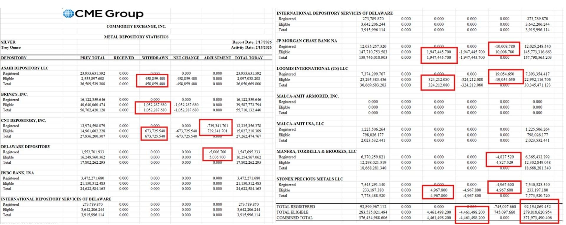 Việc gần 4.5 triệu ounce bạc bị rút ra khỏi hệ thống chỉ trong một ngày cho thấy nhu cầu vật chất thực tế đang cực kỳ lớn.