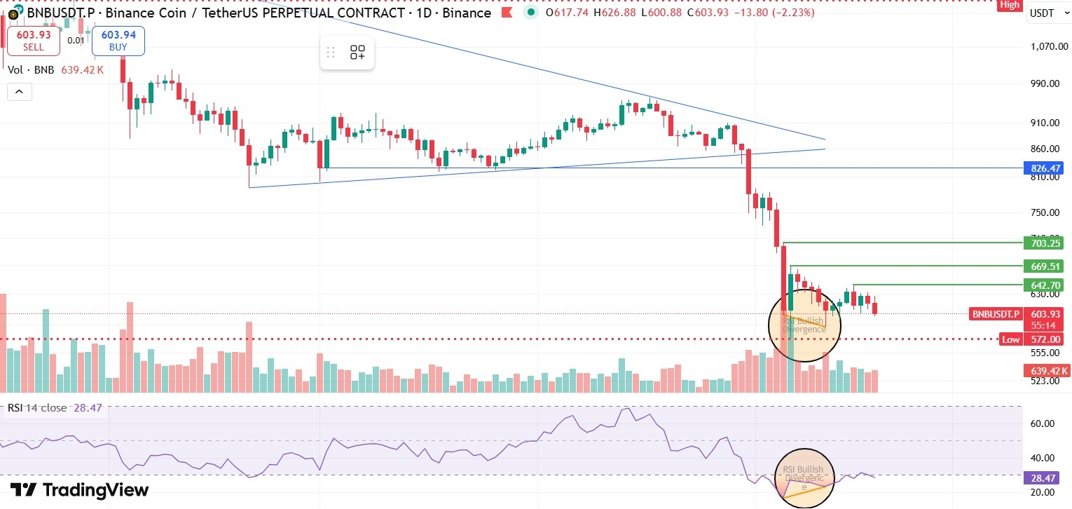 Trong ngắn hạn, dự báo thị trường cho thấy BNB giao dịch quanh mức $600, với các dự đoán hàng ngày gần đây nằm trong khoảng từ khoảng $611 đến $636, cho thấy biến động vừa phải và sự hợp nhất. Các nhà phân tích dự đoán giá sẽ dần dần di chuyển về khu vực $620–$680 trong những tuần tới nếu áp lực mua tiếp tục.