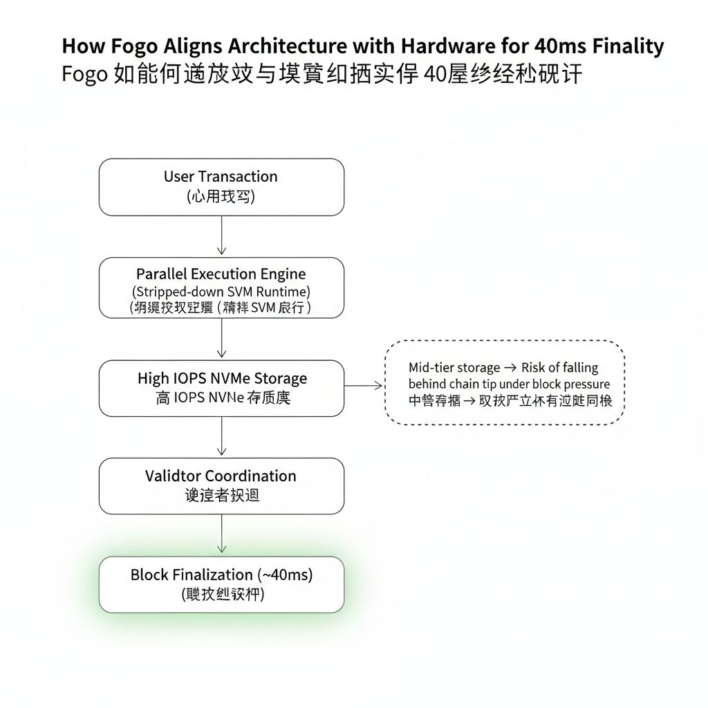 @Fogo Official 基于精简的 SVM 架构,其设计目标是实现约 40 毫秒的最终确认——在这个延迟阈值下,用户几乎可以瞬间完成确认。低于此范围,交互体验流畅无阻;高于此范围,摩擦感就会变得明显。然而,要达到这个目标,仅仅依靠巧妙的代码是不够的,还需要硬件的协同配合。