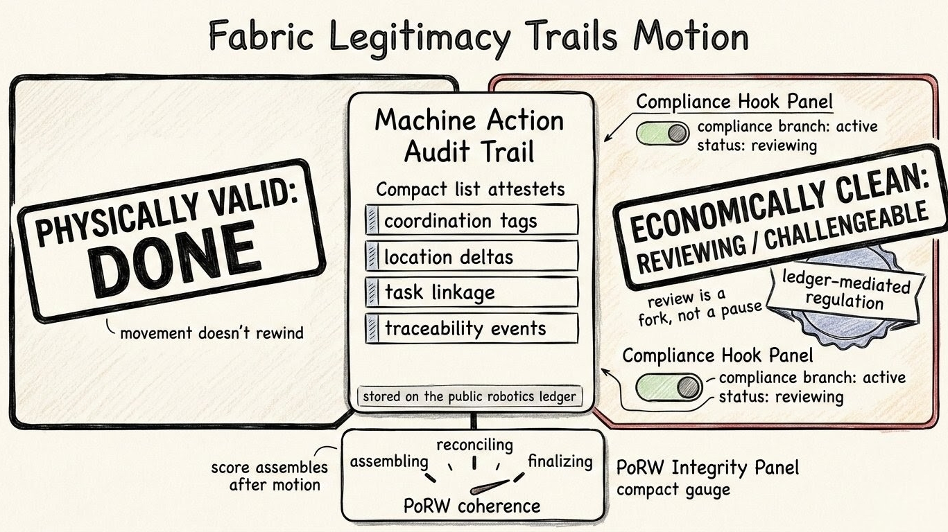 Tôi đang ở bên trong Fabric, theo dõi việc cam kết thanh toán nhiệm vụ thế giới vật lý trong khi các chứng minh tính toàn vẹn của tính toán vẫn đang trong quá trình xây dựng. Thân hoàn thành. Sổ cái bắt kịp.