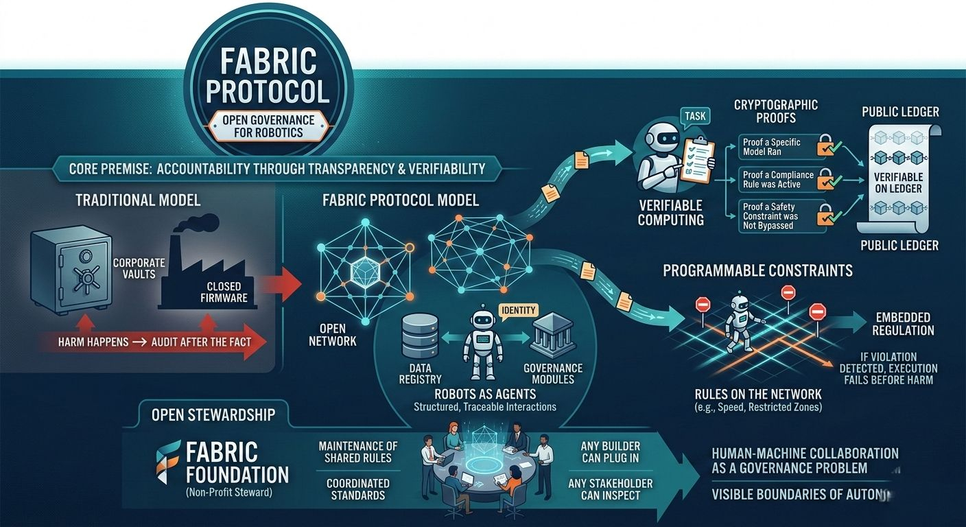 Fabric Protocol starts from a different premise: if robots are going to operate in shared spaces, their decision logic can’t be sealed in corporate vaults. It has to live in an open system where computation can be verified, policies can be inspected, and updates can be governed rather than imposed.