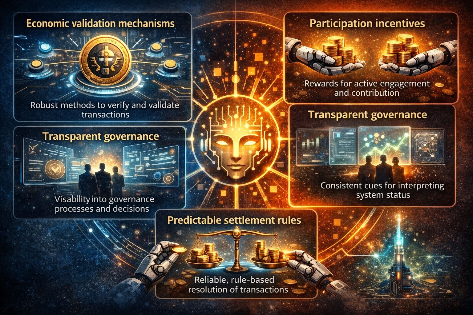 Economic governance allows autonomous systems to function within shared rules without direct oversight. It enables machines to participate in networks where behavior is guided by incentives rather than commands.