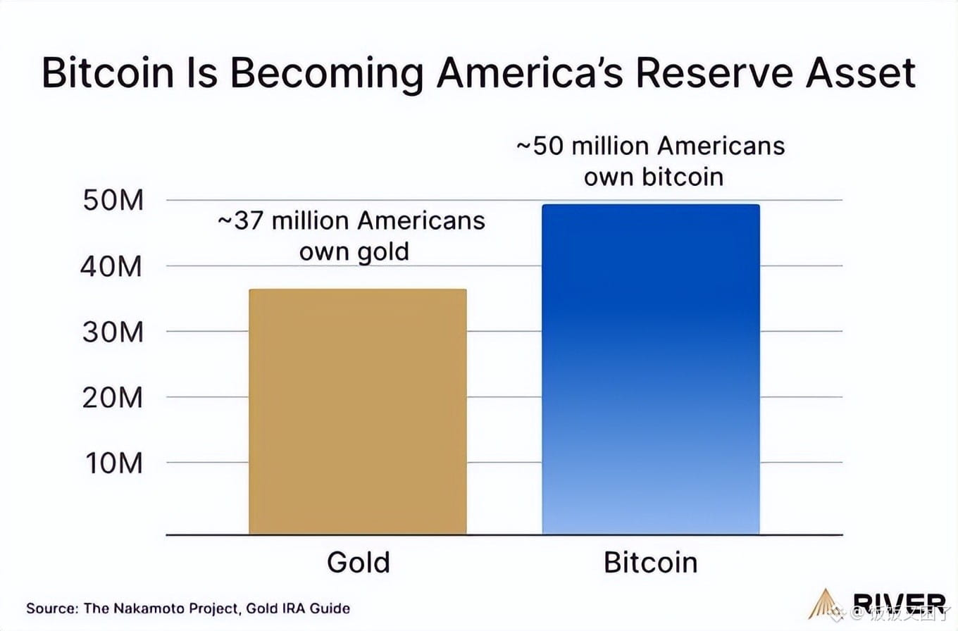 数据显示,目前拥有比特币的美国人已经超过5000万。相比之下,持有黄金的美国人大约为3700万。