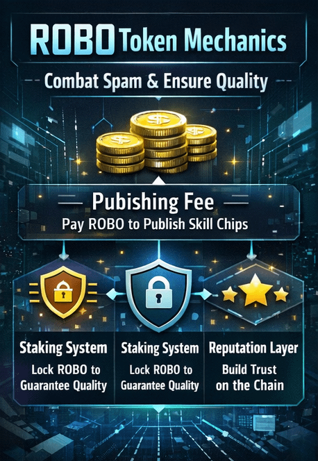 Trong hệ sinh thái này token $ROBO gần như đóng vai trò như một tấm bia chống spam. Nếu việc xuất bản hoặc phân phối Skill Chips cần trả một khoản phí bằng ROBO thì chi phí đó sẽ tạo ra một ngưỡng kinh tế nhất định. Khi mỗi lần xuất bản đều có chi phí, những ai muốn phát tán hàng loạt dữ liệu rác sẽ phải cân nhắc loạt fee khổng lồ.