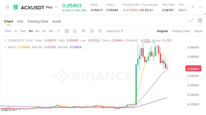 • Точка входа: $ACX 0.054–0.056 (текущая зона или откат к поддержке)