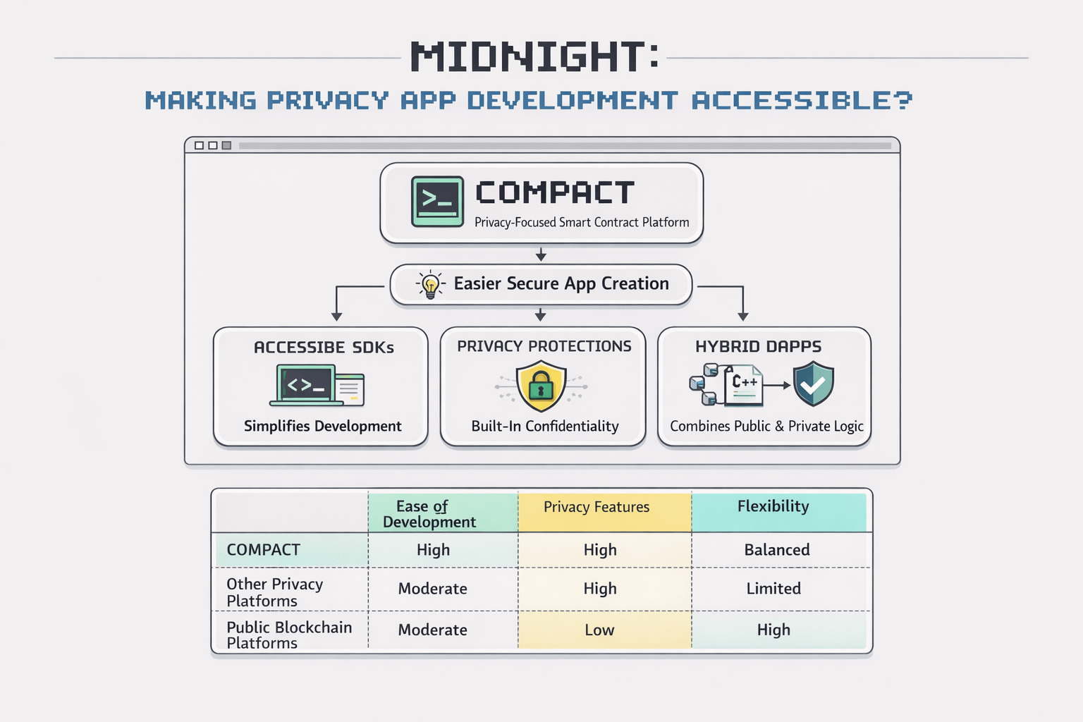 Về trải nghiệm developer họ nhấn mạnh Compact và bộ công cụ quen thuộc để dev có thể build privacy preserving app mà không phải tự ráp từng lớp kỹ thuật quá sâu từ đầu.