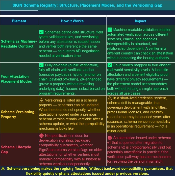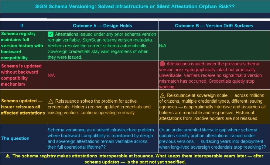 I dont know if the schema versioning model is a solved problem that just isnt documented at this level of detail or a gap that surfaces quietly years into a deployment when attestations issued under deprecated schemas stop being verifiable in practice?? 🤔#SignDigitalSovereignInfra @SignOfficial $SIGN