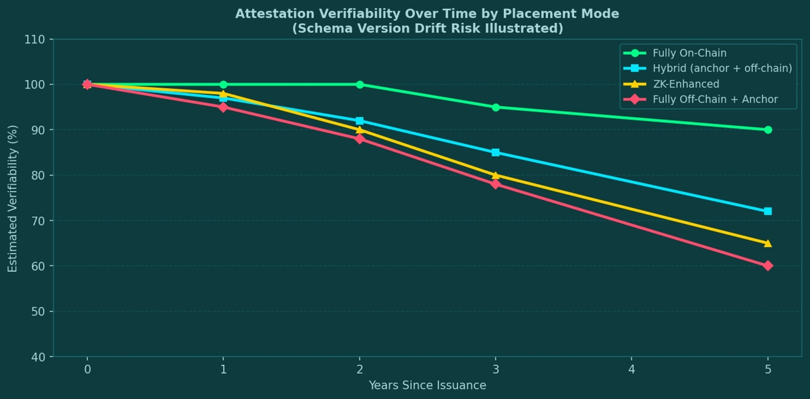 this matters more than it sounds. in a sovereign deployment, attestations dont expire quickly. a land title attestation, a professional license, an eligibility credential these could be issued today and queried years later. if schema versioning isnt handled with explicit backward compatibility guarantees, the evidence layer accumulates orphaned attestations that are cryptographically valid but practically unverifiable because the schema they reference has drifted.what the design gets right is the foundation. schema-driven structured data with machine-readable validation, four placement modes mapped to real use cases, omni-chain indexing that makes attestations queryable regardless of where they were issued. thats the right architecture for a system that needs to operate across agencies, vendors, and networks without custom integration at every junction.