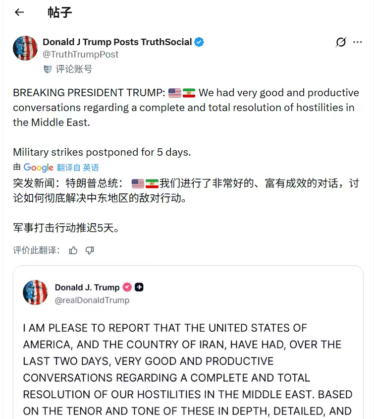 特朗普发表言论后,欧股、美股期货、数字货币纷纷转涨