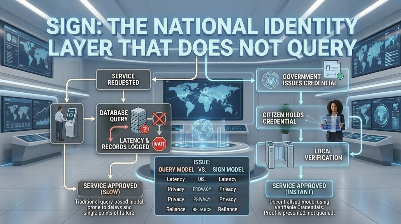 SIGN gives sovereign nations the identity infrastructure that does not query. It issues. It verifies. It travels. The citizen holds it. The government controls it. The query disappears.