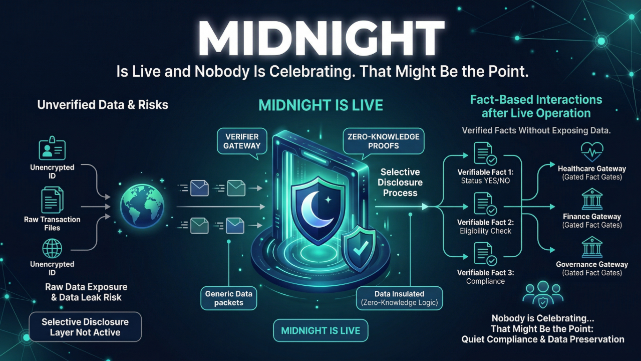 Bởi vì điều đó cho tôi biết điều gì đó về cách nhóm nghĩ về rủi ro. Hầu hết các dự án coi việc ra mắt mainnet như một sự kiện tiếp thị trước tiên và một sự kiện kỹ thuật sau. Midnight đang coi đây là một sự kiện kỹ thuật mà cũng là công khai. Sự khác biệt thật tinh tế nhưng nó thay đổi mọi thứ về cách bạn đánh giá những gì đến tiếp theo.