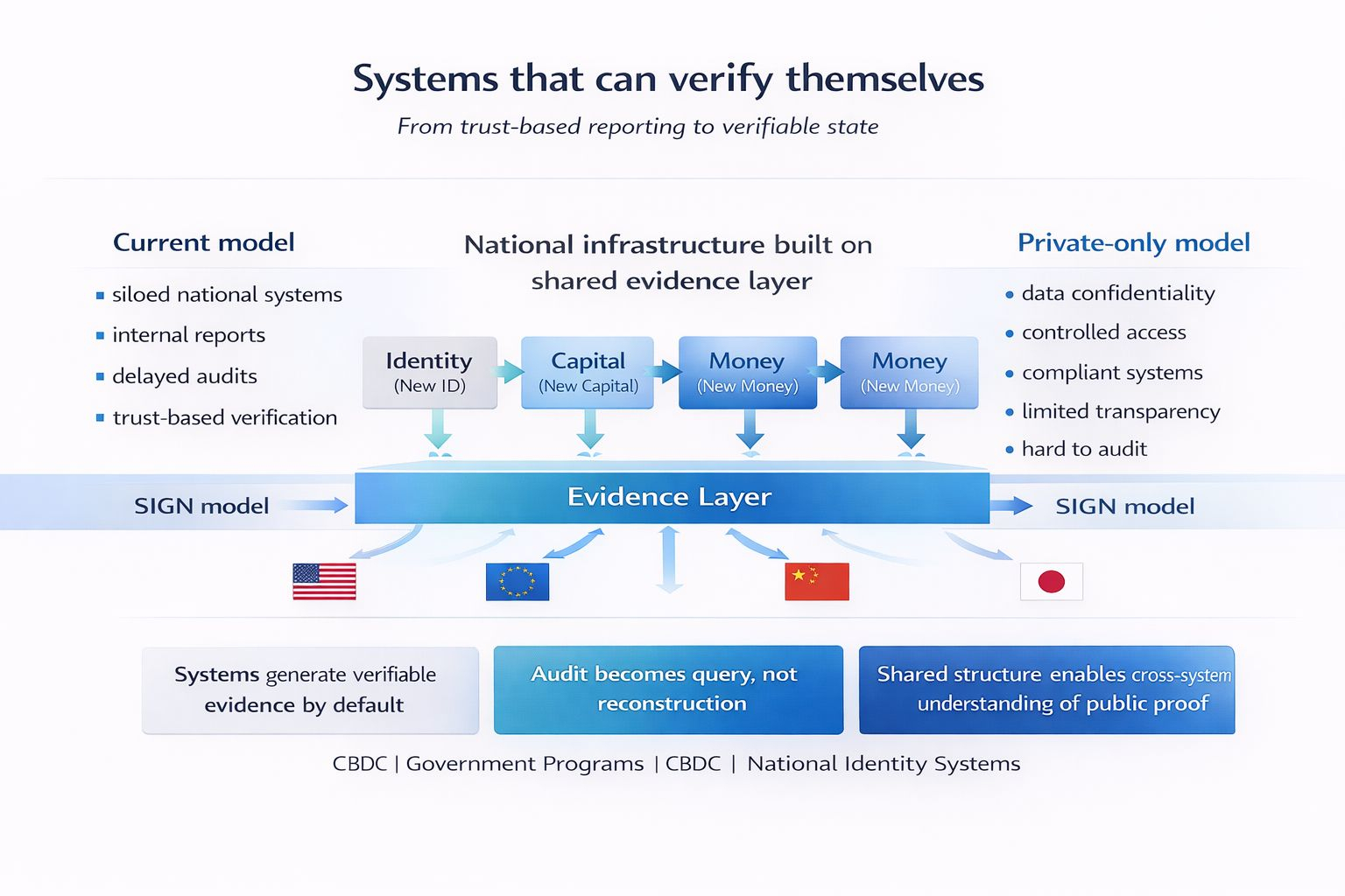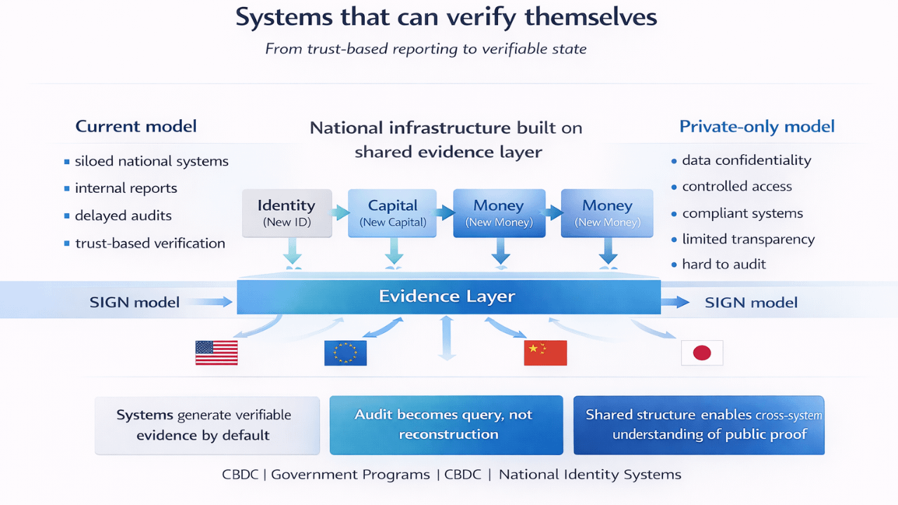 Nhưng nếu nhìn purely về kiến trúc, thì đây là một trong số ít dự án mình thấy đang cố trả lời một câu hỏi lớn hơn nhiều so với crypto thông thường. Không phải “làm nhanh hơn” hay “rẻ hơn”, mà là làm sao để hệ thống quốc gia có thể verify được chính nó.