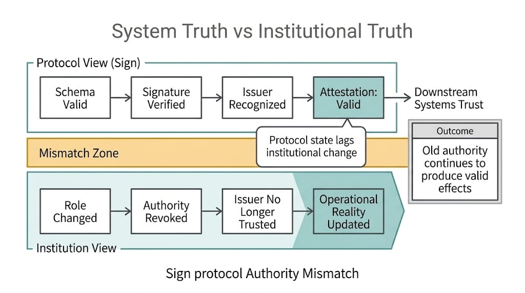 Bởi vì danh tính chủ quyền của Sign không bao giờ chỉ là một vấn đề định dạng dữ liệu. Nó luôn là một vấn đề cấp bậc. Một vấn đề quyền tài phán. Một vấn đề ai có quyền nghĩa gì. Sign không loại bỏ điều đó. Nó loại bỏ đủ ma sát hồ sơ để sự không khớp sâu hơn xuất hiện nhanh hơn.