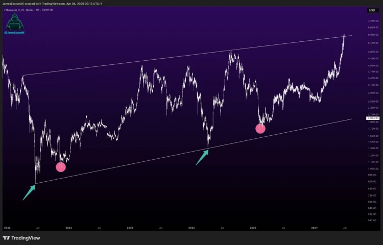 A pesar de este drama de corto plazo, si nos alejamos un poquito y vemos la película completa —el famoso gráfico de "macro"—, la cosa cambia de color. Desde el 2022 hasta este 2026, Ethereum ha respetado un canal ascendente súper sólido. ¿Qué significa esto en español claro? Que aunque veamos estas caídas que asustan, la estructura de fondo sigue siendo alcista. Los compradores han defendido la casa cada vez que tocamos el piso de ese canal, demostrando que hay confianza a largo plazo. 🏠💪