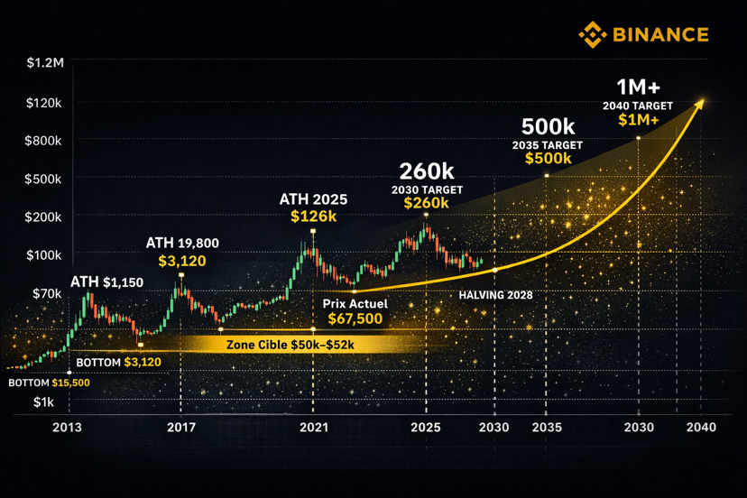 Certains modèles long terme, notamment les projections type Rainbow Chart, envisagent même des zones plus élevées en cas de retour du FOMO institutionnel.