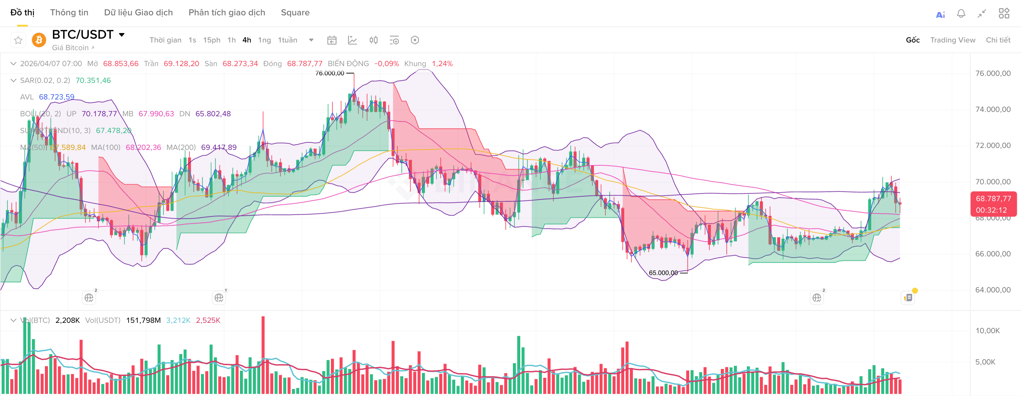 Bitcoin vừa có nhịp tăng nhẹ nhưng khối lượng giao dịch (volume) lại khá thấp. Hiện tại, giá vẫn đang đi ngang (sideway) trong vùng 65.000$ - 75.000$.