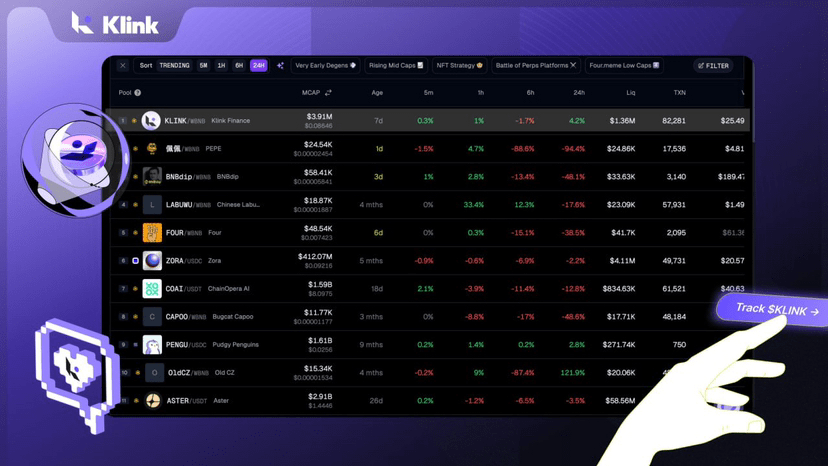 · $BNB đang thể hiện sức mạnh, một tín hiệu lớn cho toàn bộ hệ sinh thái BSC nơi KLINK tồn tại.
