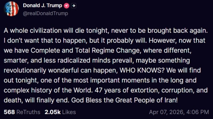 In a dramatic escalation of global tensions, former U.S. President Donald Trump has issued one of the most alarming warnings in recent history. In a direct message regarding the ongoing conflict with Iran, Trump stated that “an entire civilization could be wiped out tonight.”