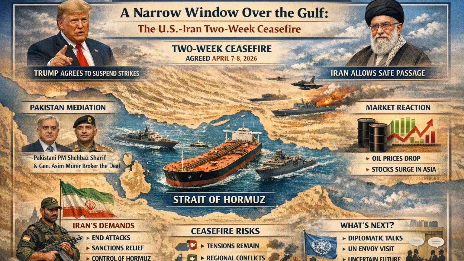 Lệnh ngừng bắn hai tuần được báo cáo giữa Hoa Kỳ và Iran không chỉ là một tiêu đề Trung Đông khác được bọc trong ngôn ngữ ngoại giao. Nó diễn ra vào một thời điểm khi khu vực đang tiến gần đến một cuộc chiến tranh rộng lớn hơn, các thị trường dầu toàn cầu đang chịu áp lực cực đoan, và Eo biển Hormuz đã trở thành đường phân định trung tâm trong một cuộc xung đột đã tràn ra trên các mặt trận quân sự, chính trị và kinh tế. Theo Reuters, Tổng thống Donald Trump đã đồng ý vào ngày 7-8 tháng 4 năm 2026 để đình chỉ các cuộc không kích của Hoa Kỳ trong hai tuần sau khi Pakistan đề xuất một lệnh ngừng bắn, với thỏa thuận liên quan trực tiếp đến việc Iran cho phép mở lại an toàn Eo biển Hormuz.